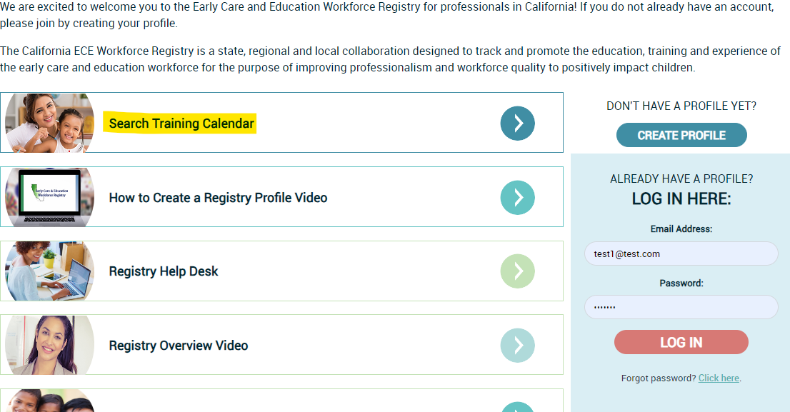 Please note that to enroll in a training, you must have a Registry profile. If you need to create one, please go to www.caregistry.org.